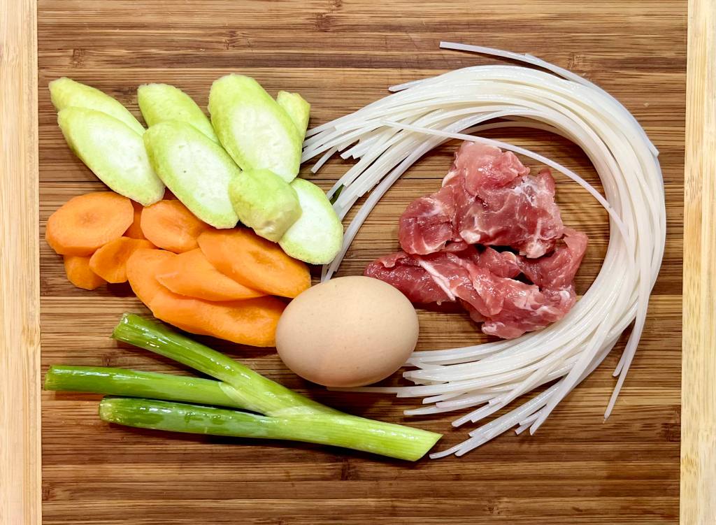 - Én ilyen előre főtt, rizstésztával csináltam, de ezt is meg kell főzni, hogy vissza puhuljon. Ennek is vannak különböző fajtái, ez nem az üvegtészta volt annak elég ha előtte forró vízbe áztatjuk és éppen amikor kész minden akkor tesszük bele a levesbe, hogy ne főjön szét a tésztánk.