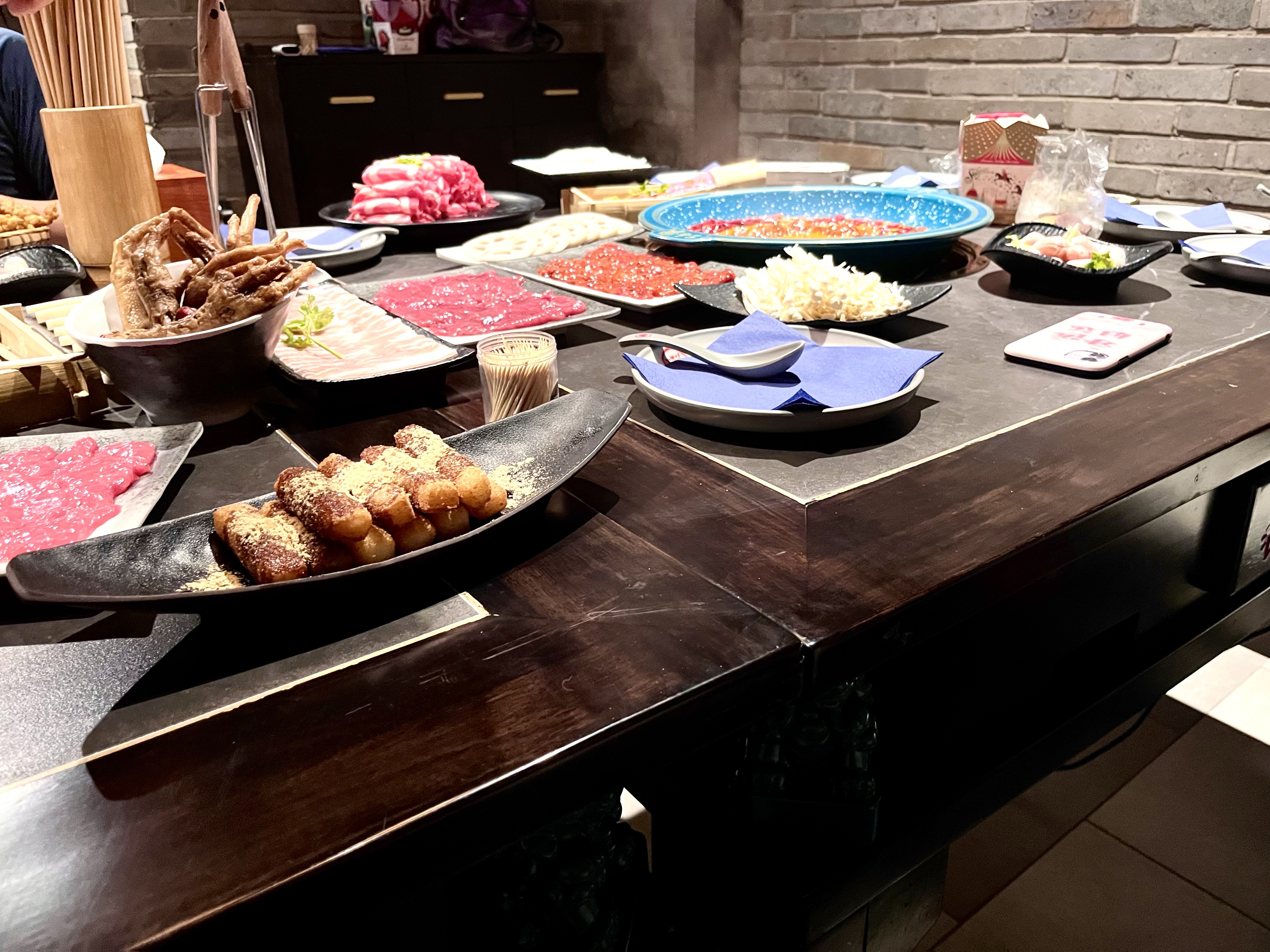 Túl helyen voltunk és van ahol csak 1-2x így azokat nem nagyon jegyeztem meg. Ugye ezt lényegében úgy kell elképzelni, hogy van középen 1 vagy kétoldalt 1-1, attól függ mekkora társasággal megyünk tál – ez általában felezve van és kétféle ízű vagy legalábbis csípősségi fokozatban eltérő leves/főző lét tartalmaz. A tál alatt meg a tűzhely el dugva és folyamatosan melegíti a tálat, hogy meg tudd főzni a húsokat és zöldségeket.