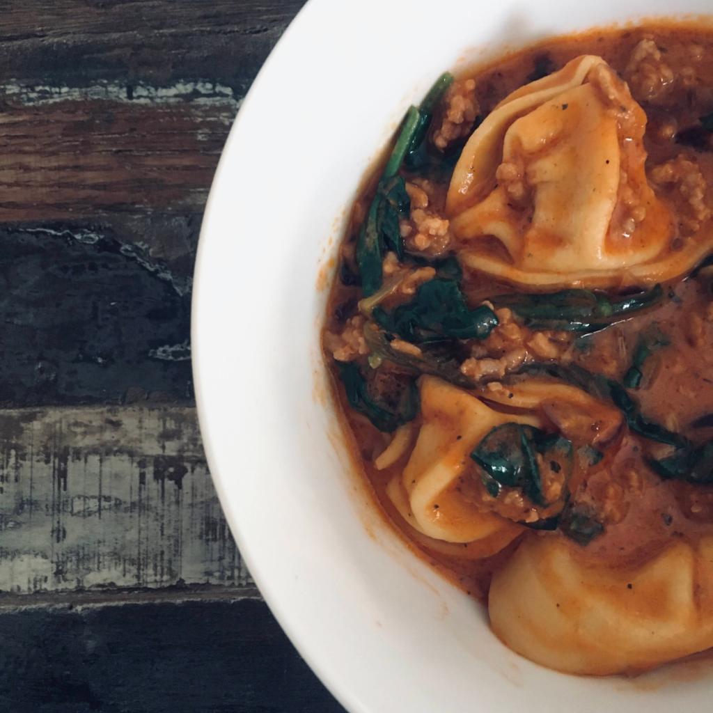 - egy csomag tortellini – több verzió is van belőlük pl. húsos, zöldséges, sajtos – én hússal töltöttet választottam